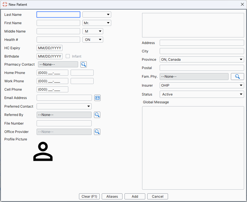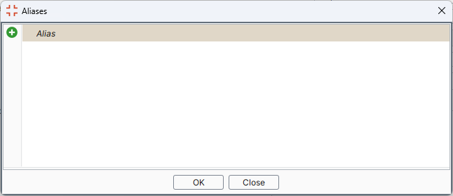 The Aliases button opens an Aliases window, where users can add any other aliases that the patient uses: