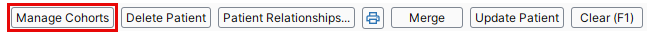 - Click the Manage Cohorts button located at the bottom of the window. The Manage Patient Cohorts window is displayed.