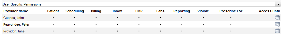 Users can be either given access to specific areas of Accuro permanently or if it is a Provider they only need to access for a short-time (e.g. holiday cover for another staff member), the access can be given until a specified date, after which time they will be unable to access areas for that Provider.