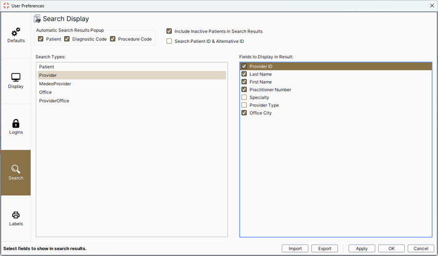 - In the Search Types select Provider.