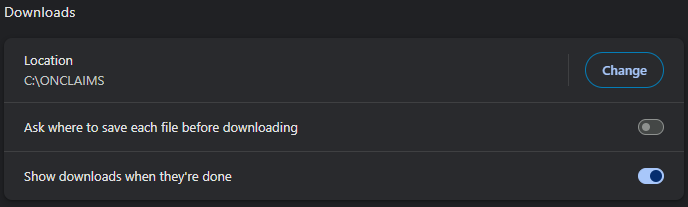 Click Change and ensure that the Download location is C:\ONCLAIMS.