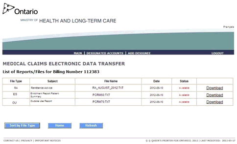 Repeat the process until you have downloaded all files with the status 'Available'. If you have more than one Provider you will click on “Select another Billing Number” to repeat the process for all of your providers.