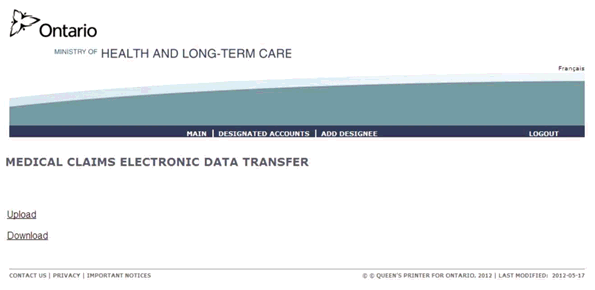 - After logging in, click MC EDT Service (Upload/Download) the following window is displayed.