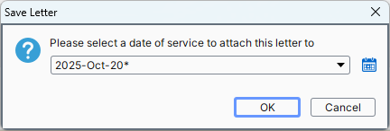 Note: If a note is entered for a patient who has an appointment without an Encounter Note attached, you are prompted to select a date of service to attach the letter to.