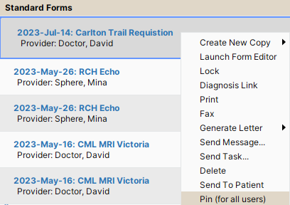 - Right-click the existing form for the patient desired to be copied and click Create New Copy.