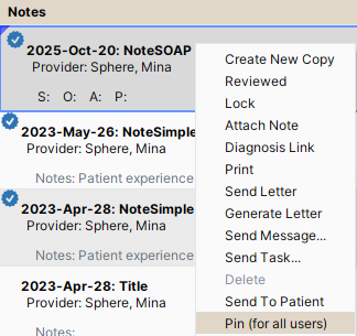 - Right-click the desired existing encounter note for the patient and click Create New Copy.