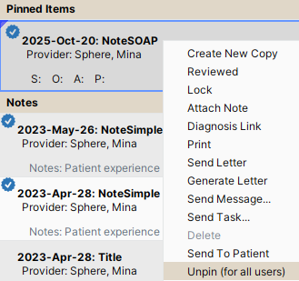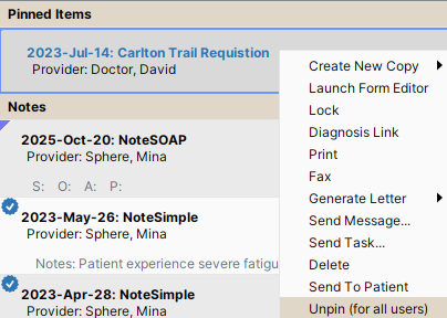 - Right-click the existing encounter note or form for the patient and select Unlock from the list displayed.