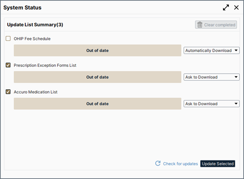A user can run the update at any time while they're working in Accuro by clicking on the System Status icon at the very top-right of the Accuro window.